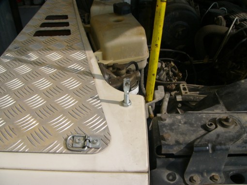 Per evitare vibrazioni del cofano con la gomma montata sopra, ho messo due ganci stile rally…. in questo modo il cofano è ben fermo anche in fuoristrada.
