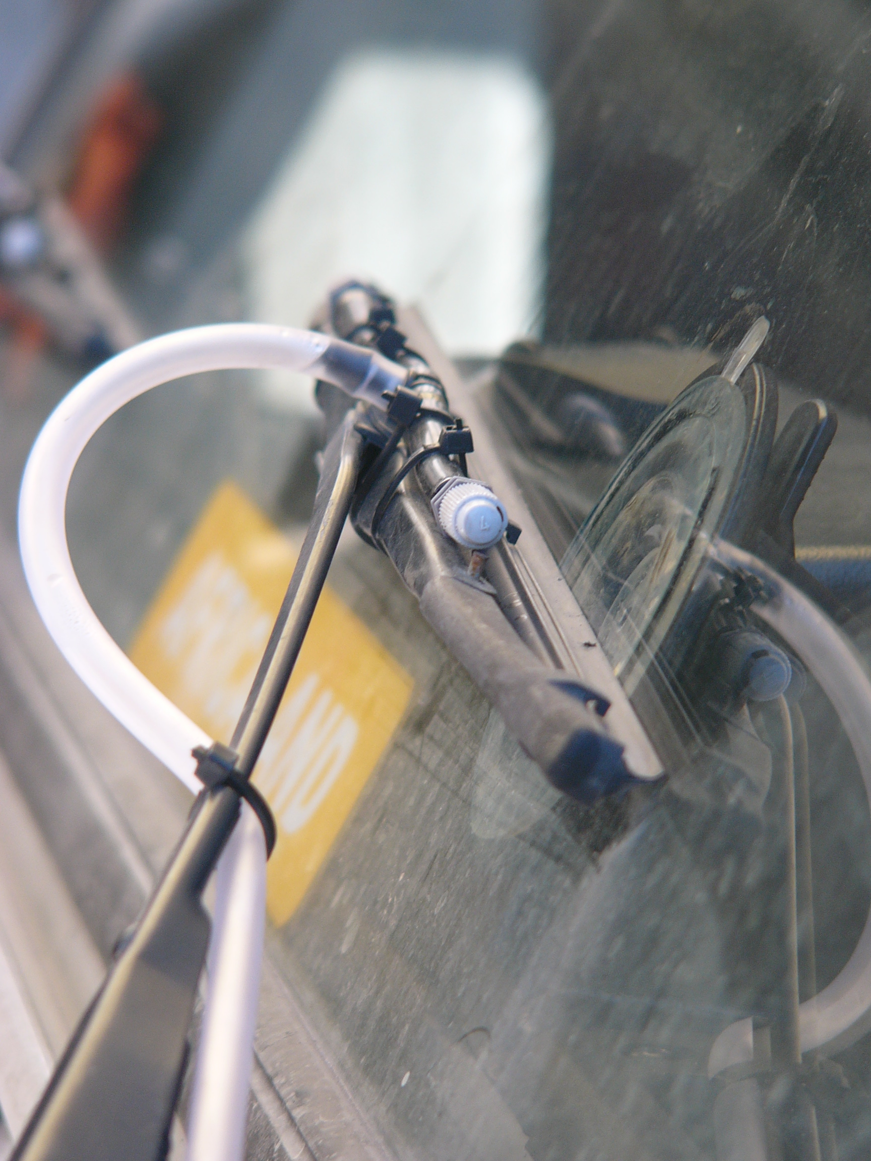 Si tratta di potenziare il getto d’acqua dei due miseri spruzzini di serie, per chi ha tempo e manualità è possibile fare un bel lavoro smontando tutto il cruscotto e mettendo un nuovo spruzzino, per chi invece come me ha poco tempo e una manualità media ecco che si può fare lo stesso lavoro passando…dall’esterno.