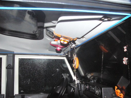 Quando si è presentato il problema di dove stivarle per poterle avere comunque a portata di mano ho pensato di metterle sulle alette parasole: in questo modo sono sempre pronte all’uso e in più sono utilissime come lampada legginote 😉