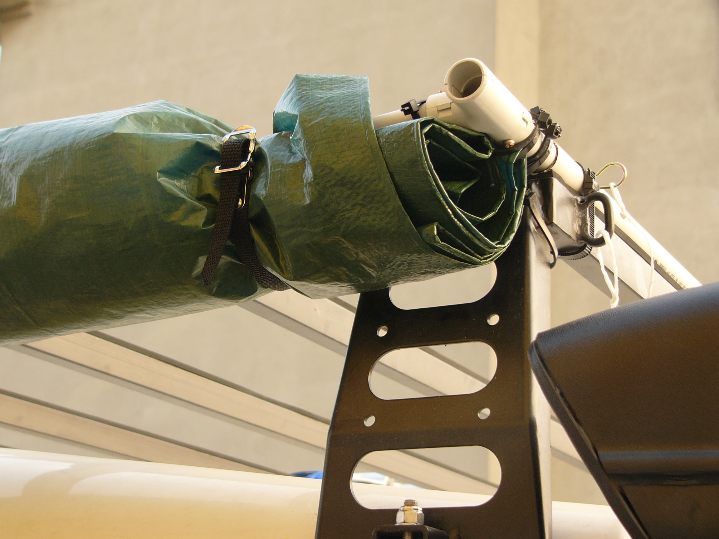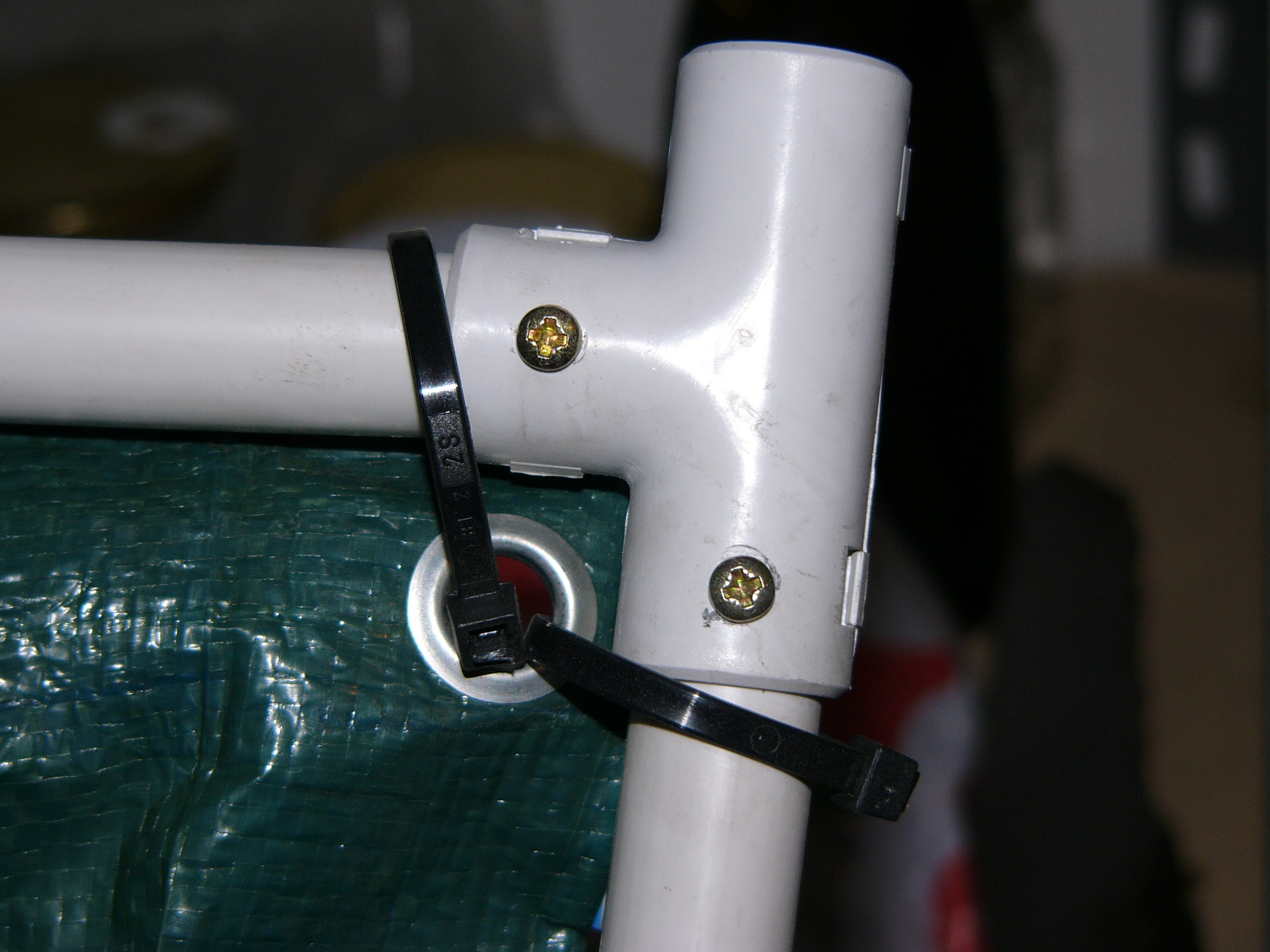 mi sono procurato del tubo per canaline elettriche, (3 mt diam. 25 e 3+2 mt diam.20), due raccordi a T del 20 ed un telo 3×2 con occhielli, spesa totale poco più di 10 euro.