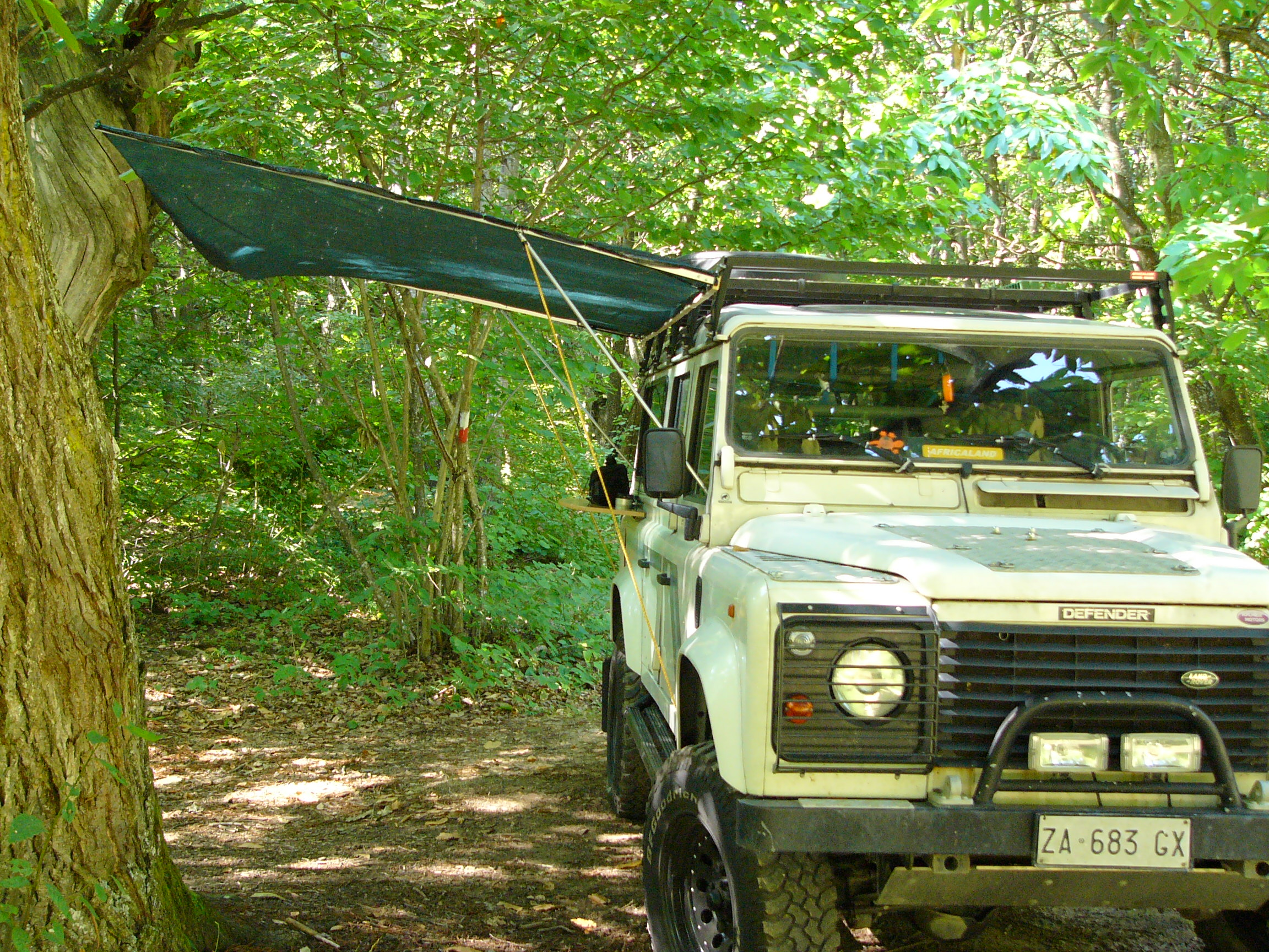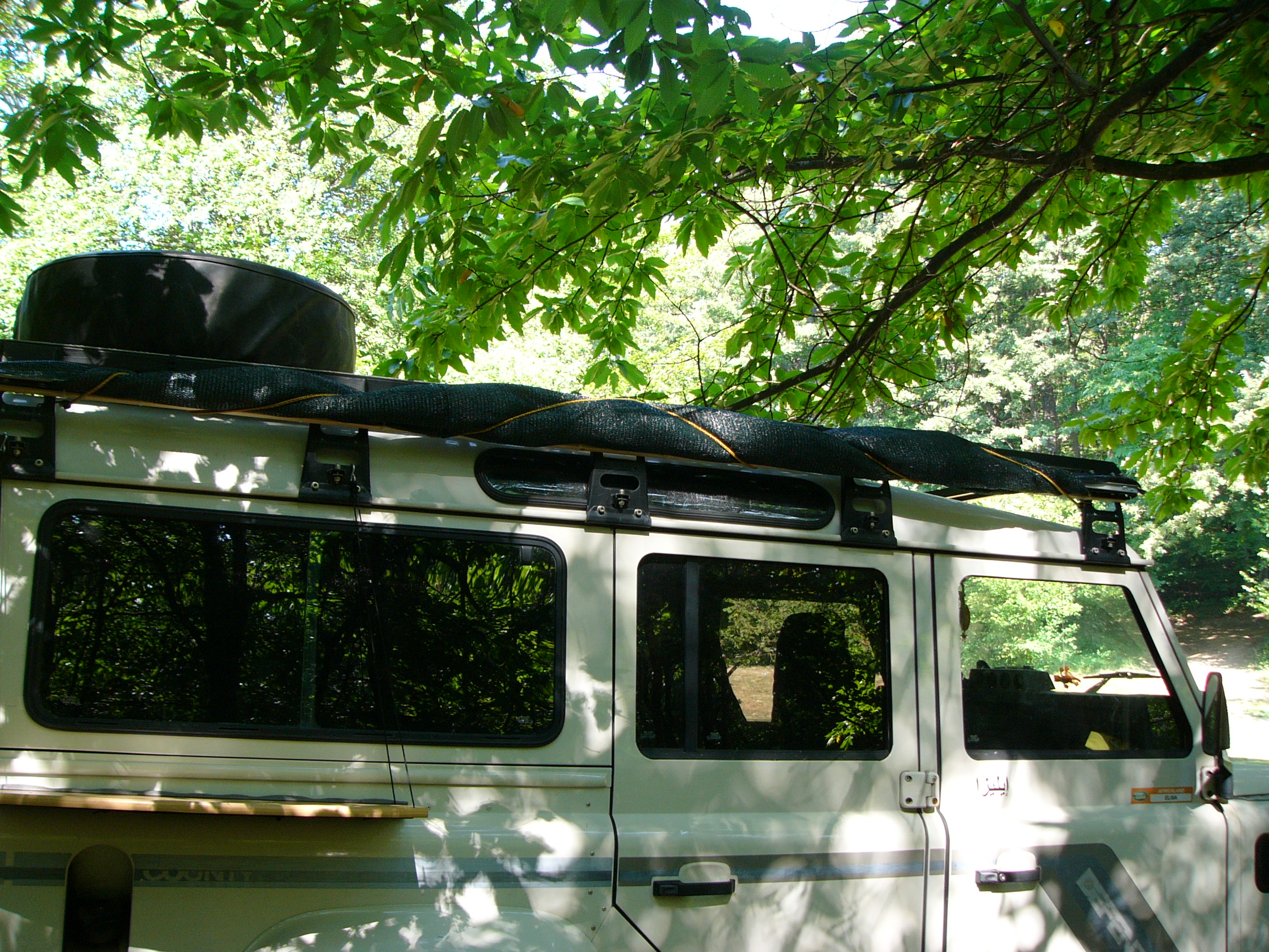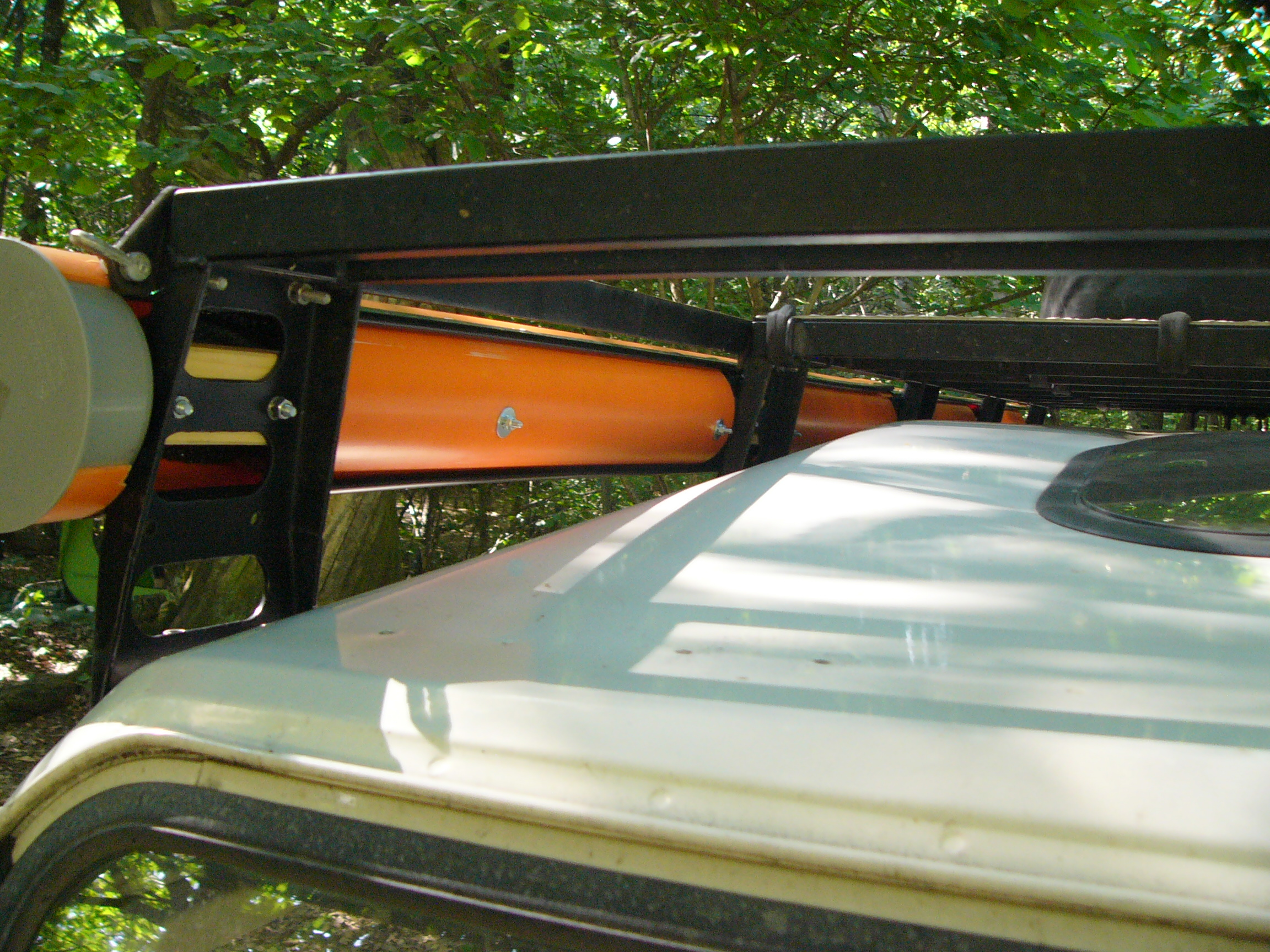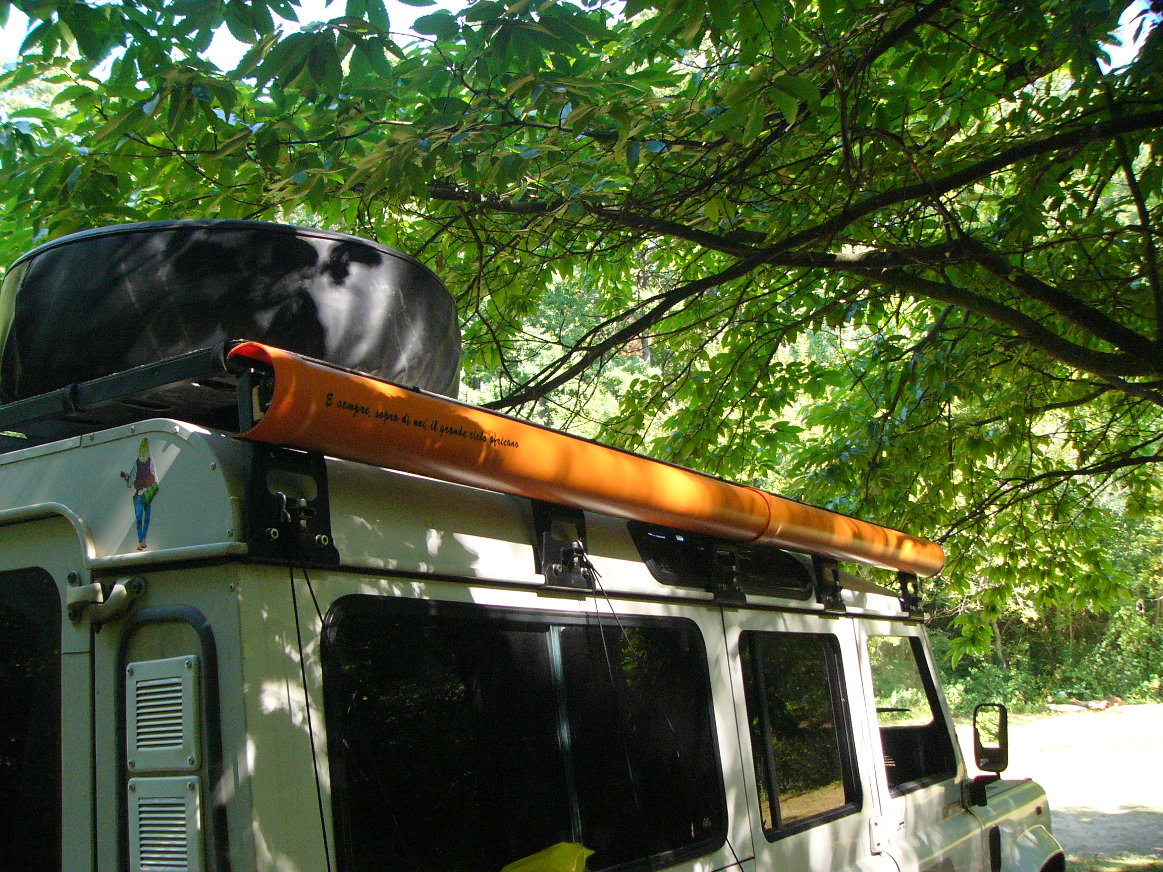 Mi sono accorto che così è però parecchio esposta a rischio strappi coi rami, per cui ho studiato un sistema rigido di copertura: ho preso dei tubi in pvc diametro 100, li ho tagliati a misura e posizionati tra gli spazi vuoti tra le gambe del portapacchi