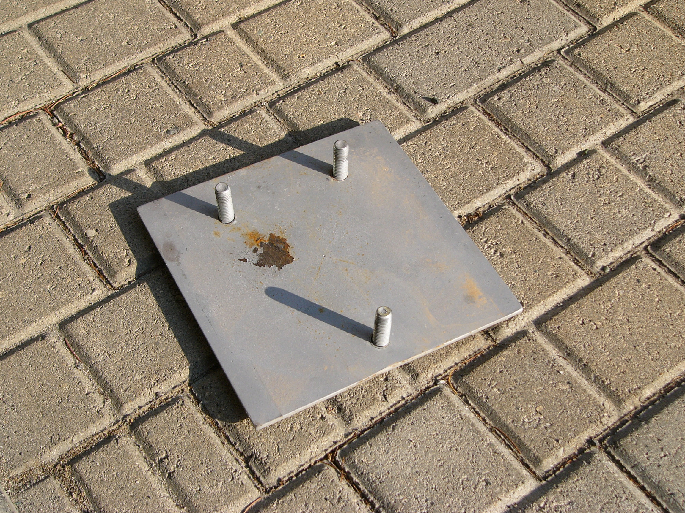 formato da una piastra quadrata da cui fuoriescono 3 bulloni M10 saldati inferiormente e uno superiore
