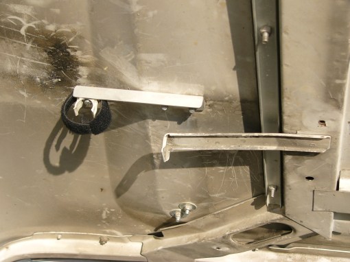 In un primo momento avevo fissato il nuovo reggicofano all’apposita staffettina già presente sotto al cofano, ma la toule marocchina e il peso del tubo me l’hanno presto criccata così ho messo un pezzo di profilato fissato ai bulloni che tengono un gancio sul cofano: