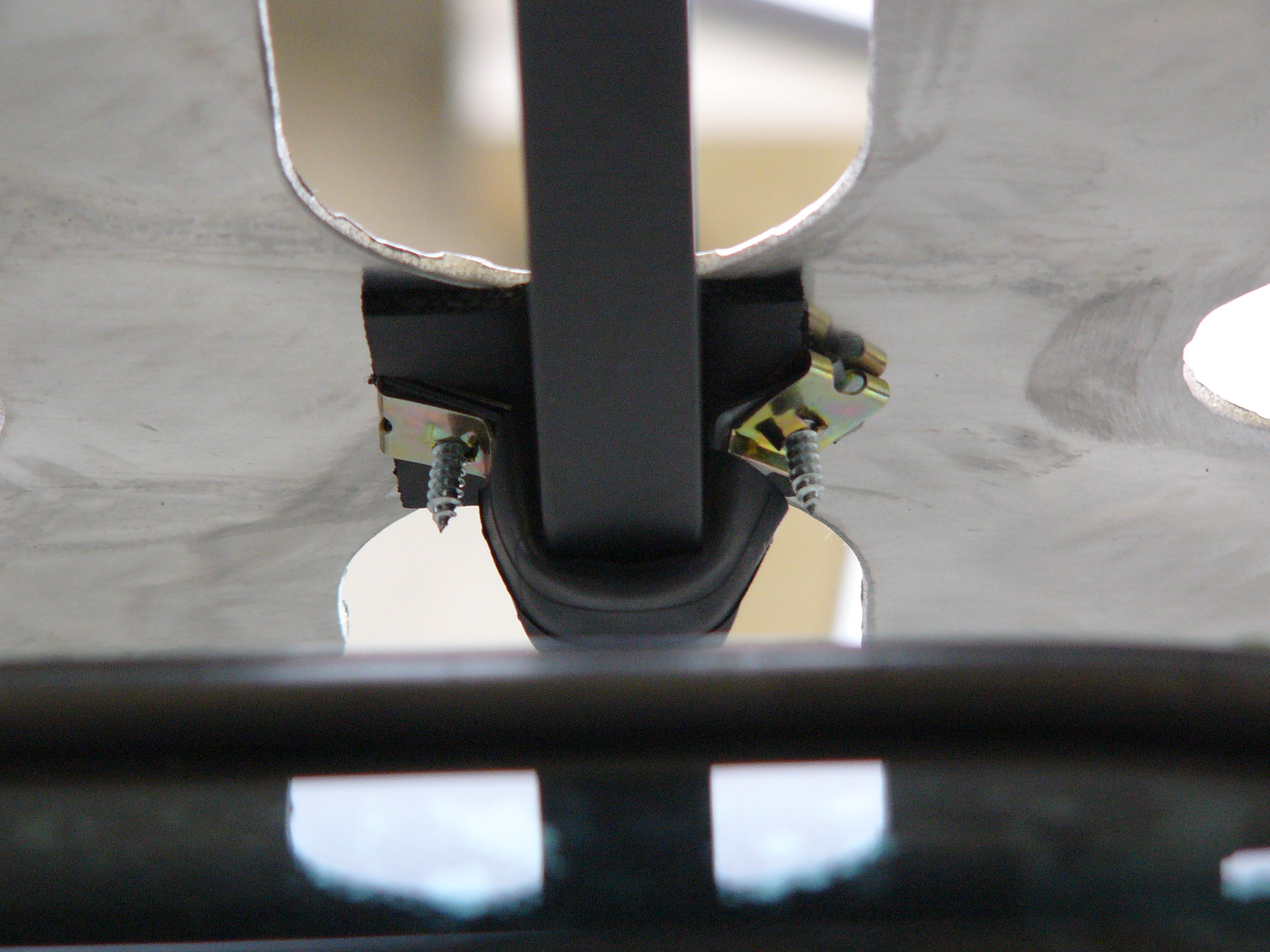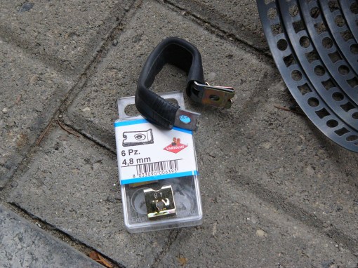 e dei cavallotti a G per le due traverse anteriore e posteriore. I cavallotti sono stati protetti con una camera d’aria e sulla punta ho infilato la piastrina con foro per viti parker