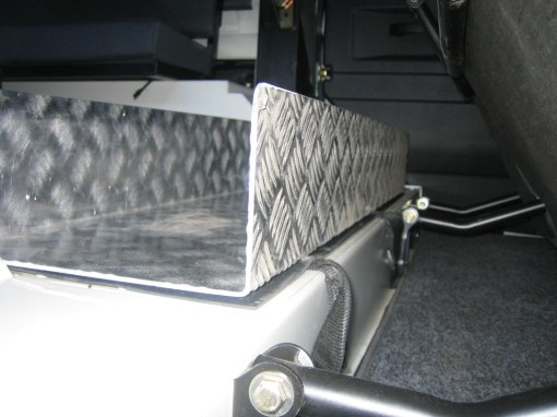 Non ricordo le misure e purtroppo non ho il mio 110 a casa. Comunque sta’ perfettamente sotto i sedili posteriori del 110 ed è un ottimo contenitore. Ho lasciato la parte mandorlata all’esterno per migliorare il grip con il tappetino di gomma.