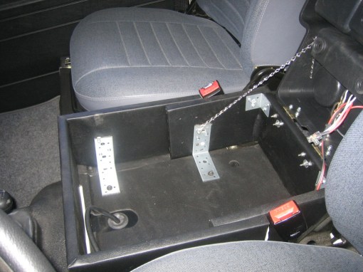 L’utilizzo dei due elementi a U incastrati tra di loro, permette anche di seguire perfettamente il profilo della base dove si appoggia la cassetta che non è regolare. L’altezza della cassetta è chiaramente una scelta personale e può essere variata a piacimento, tenete però conto dello spazio necessario per agganciare le cinture di sicurezza. Ho poi rivestito la cassetta con della similpelle nera.