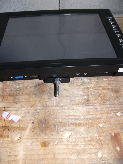 sotto al monitor ho fissato un bulloncino M6 senza testa (il monitor aveva già un foro filettato predisposto)