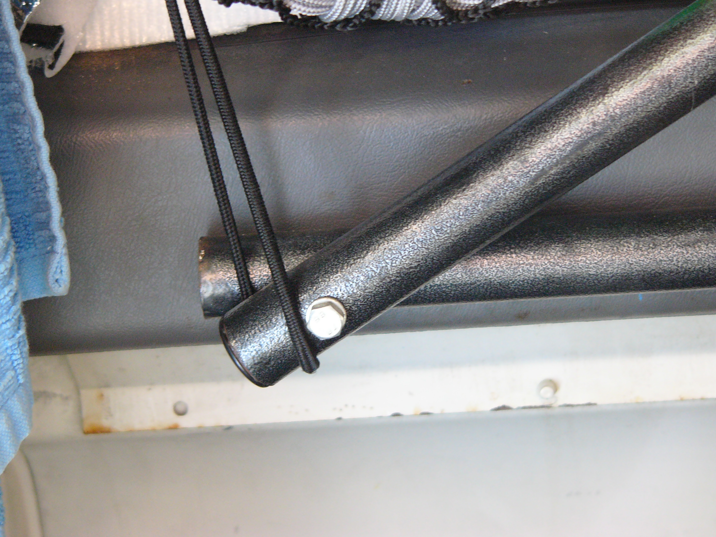 Sul tubo longitudinale ho messo due “piedi” che scaricano sul pianale e contribuiscono a proteggere il retro dei sedili