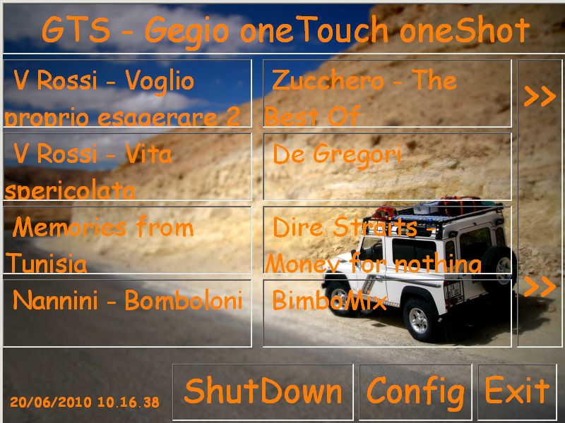 Il programma dà la possibilità di avere due schermate con un totale di 16 grossi tasti completamente configurabili per poter lanciare con un solo tocco sul touchscreen quello che si vuole: programmi, MP3, cartelle di files, siti internet, ecc.