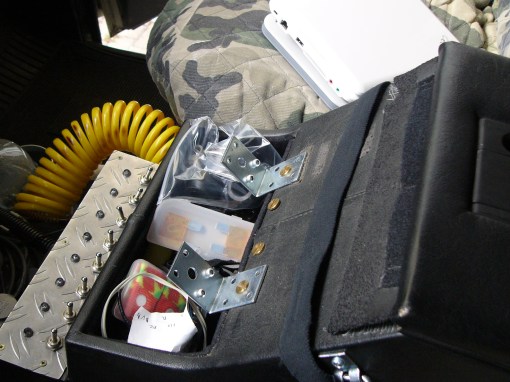 gli alimentatori per il pc e il dissipatore sono posti nel cassetto sotto al cubby che per l’occasione è stato anche modificato (si possono vedere le differenze del cruscottino attuale con le foto nell’articolo sul cassetto) e raffreddati da una apposita ventolina.