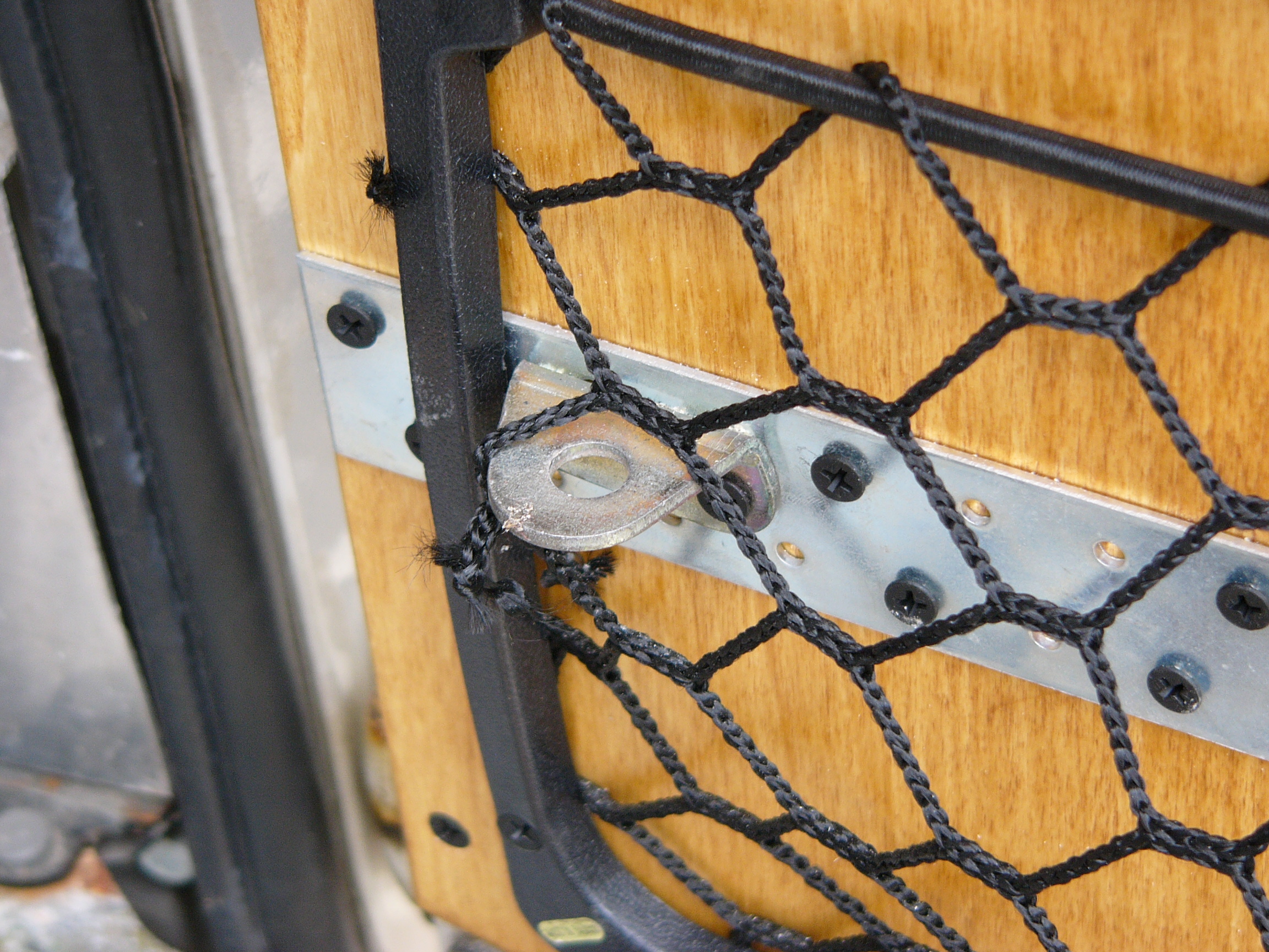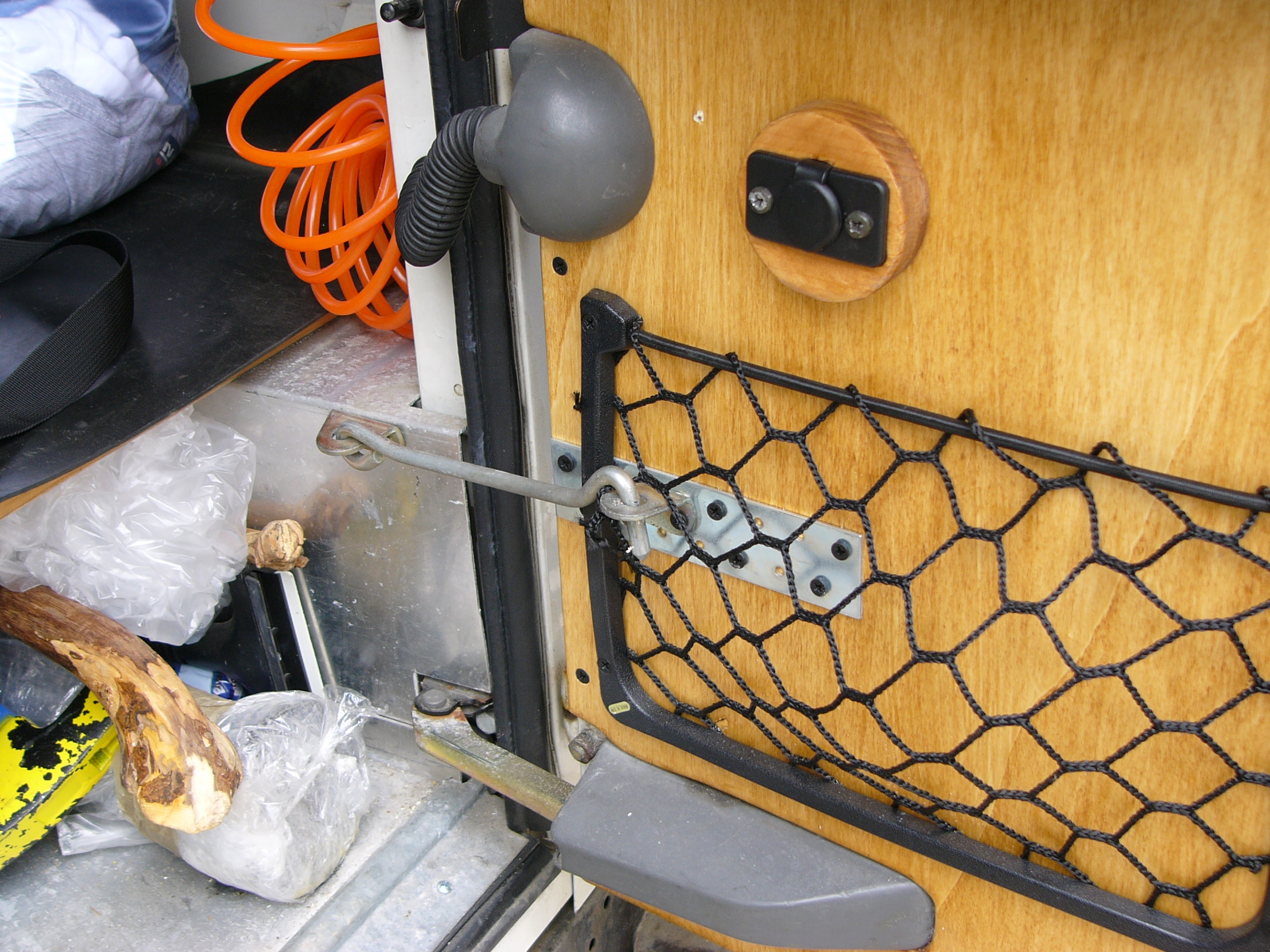 mentre sul pannello del portellone ho fissatto il relativo occhiello (con una piastrina sotto per distribuire meglio lo sforzo)