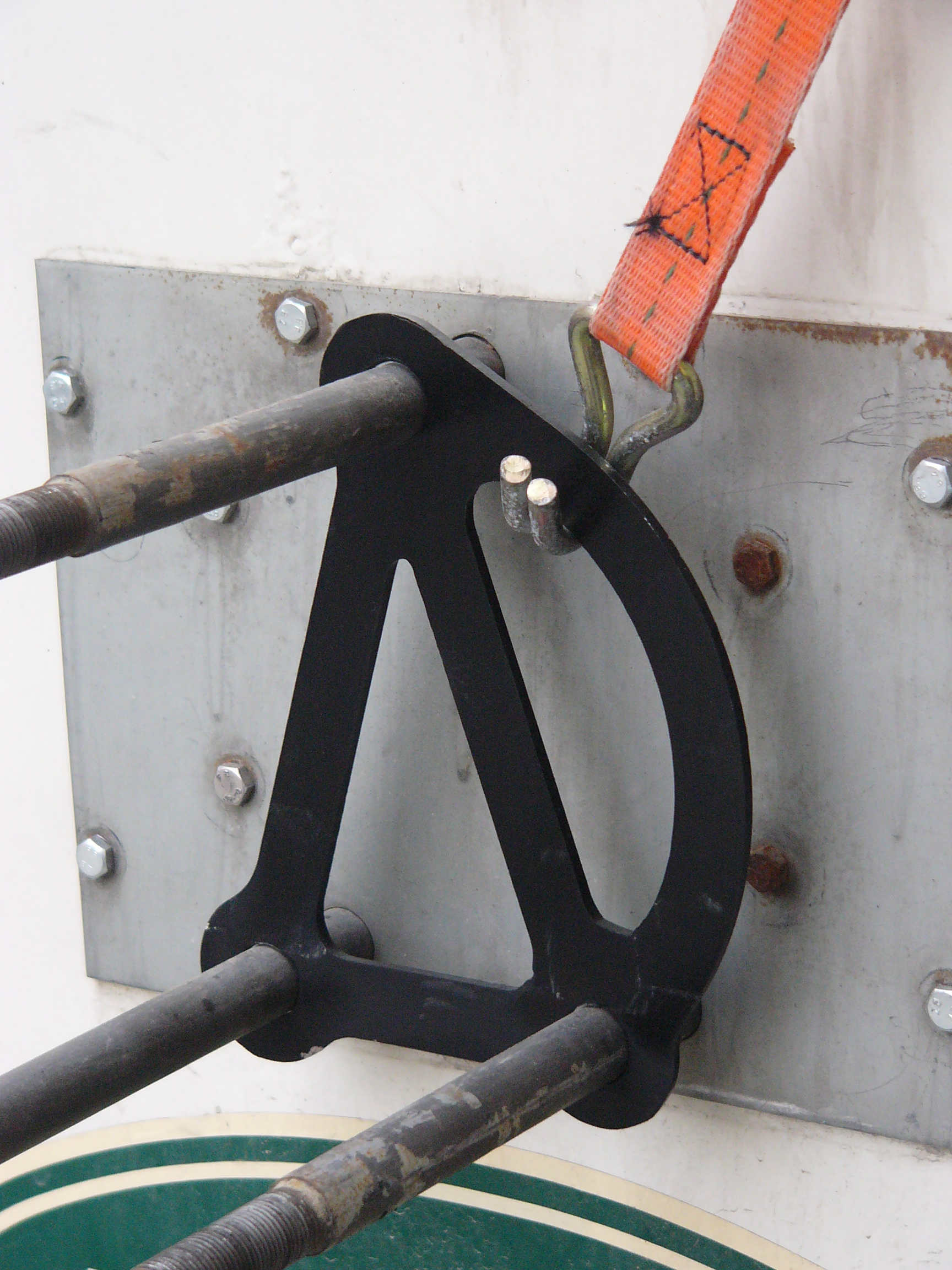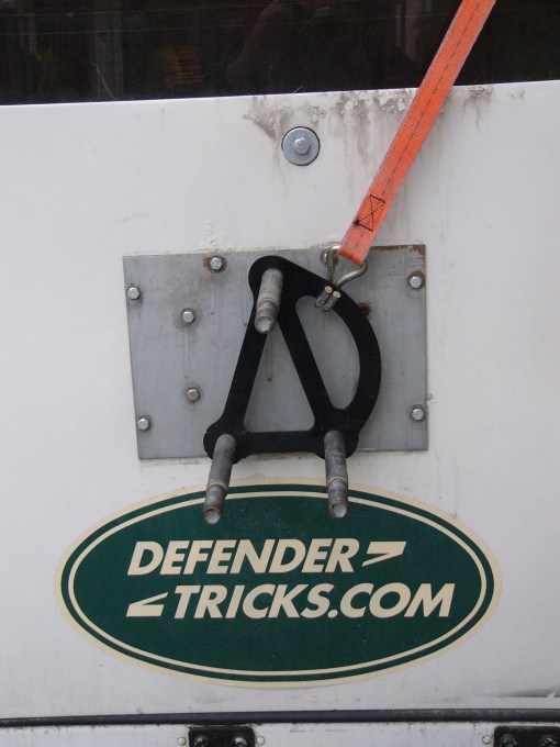 Gancio reggiruota, da applicare direttamente al supporto ruota di serie e a cui agganciare una fascia a criccketto per alleggerire il peso della gomma di scorta dal portellone, vedi articolo