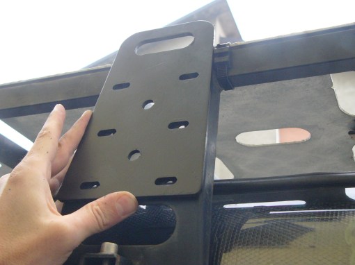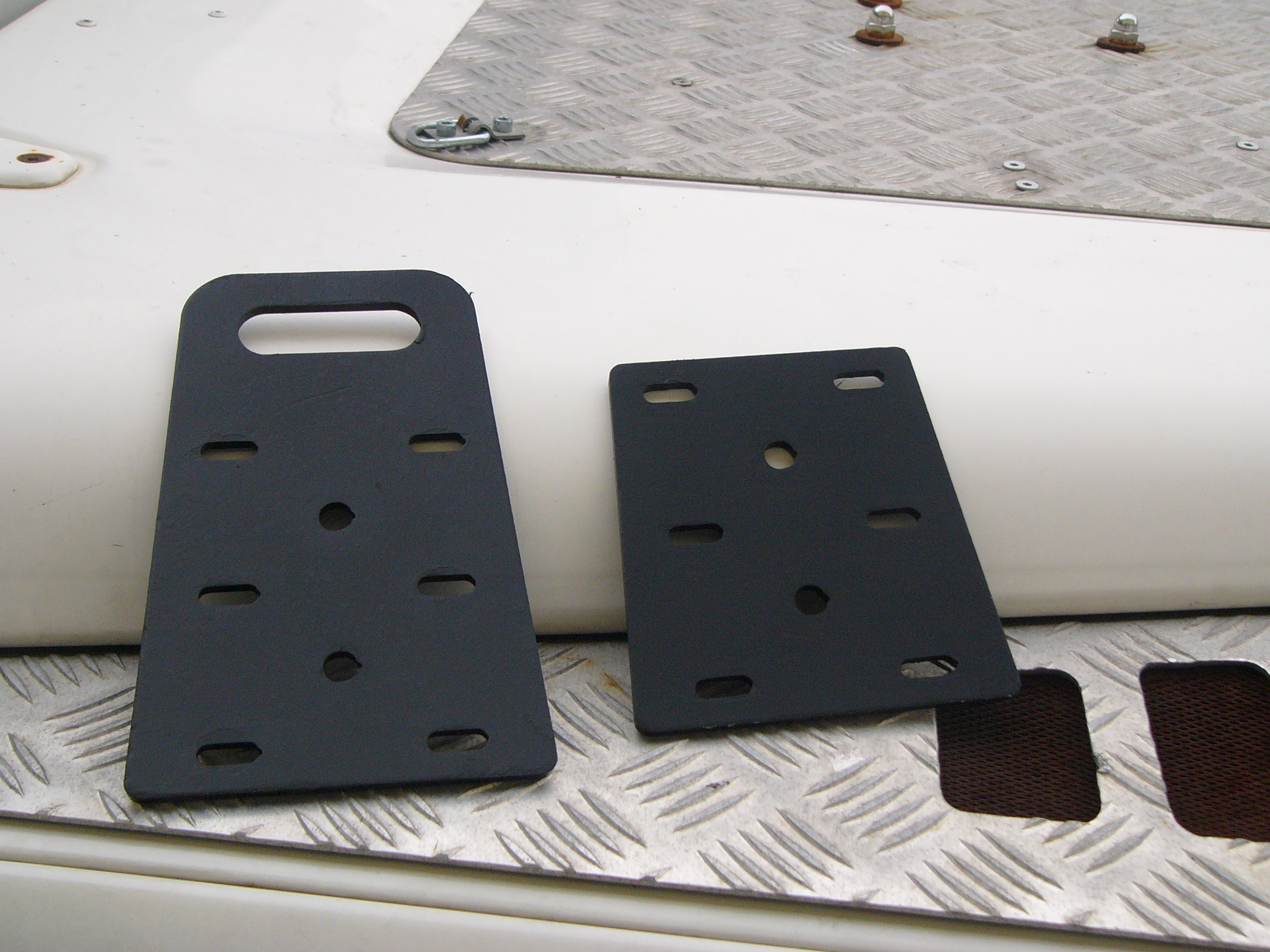 Piastre da imbullonare alle gambe dei portapacchi Africaland per permettere il fissaggio di accessori (piastre da sabbia, verande, ecc) senza rovinare il portapacchi, disponibili anche con spondina superiore per un migliore fissaggio del carico.