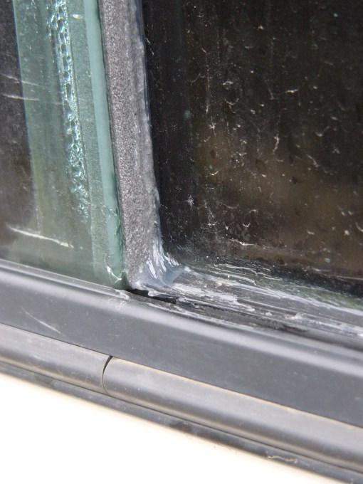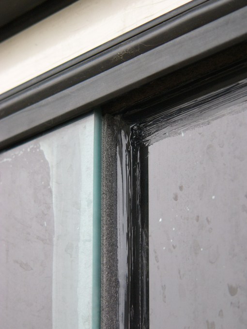 Per sicurezza ho siliconato tutto il perimetro interno del telaio, poi mi sono spostato all’esterno dove ho inserito tra i due vetri (scorrevole e fisso) una guarnizione di spugna incollata al vetro dopodichè ho siliconato tutto il vetro fisso soffermandomi particolarmente nei due angoli inferiore e superiore dove c’è una sorta di imbuto che faceva entrare acqua